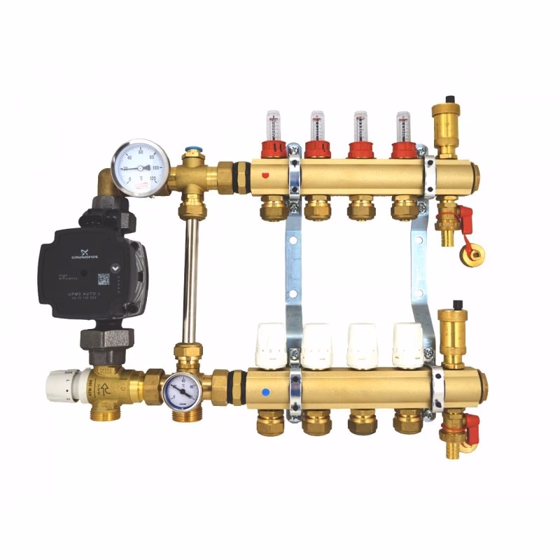 Rozdzielacz mieszający, jak sama nazwa wskazuje, miesza wodę gorącą z zasilania instalacji grzewczej z wodą chłodniejszą, powracającą z pętli ogrzewania podłogowego. W ten sposób obniża temperaturę czynnika grzewczego do pożądanego poziomu. Dzięki temu, do pętli podłogówki trafia woda o bezpiecznej i komfortowej temperaturze, idealnej do oddawania ciepła przez powierzchnię podłogi.