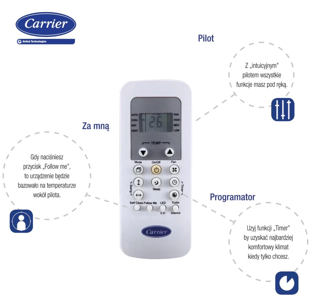 Mając numer modelu klimatyzacji, możesz łatwo znaleźć odpowiedni pilot zamienny w sklepach internetowych lub autoryzowanym serwisie Carrier.