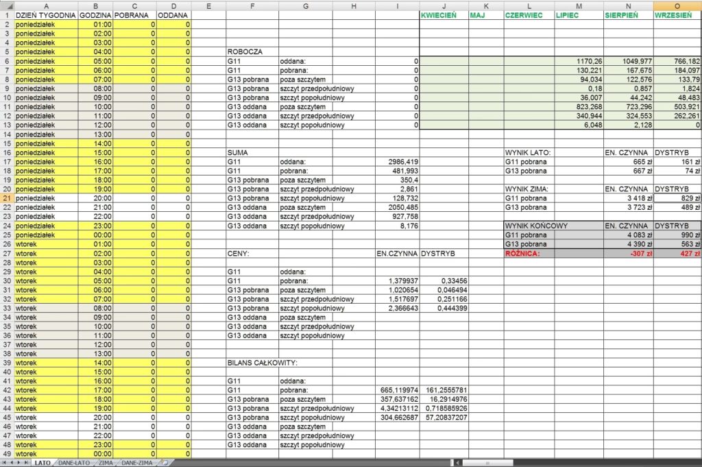 • Wybór taryfy: Choć opłaty stałe są obecne w każdej taryfie, wybór odpowiedniej taryfy może znacząco wpłynąć na całkowite koszty. Jeśli zużywasz więcej energii w określonych godzinach (np. w nocy lub w weekendy), taryfy dwu- lub trójstrefowe (G12, G12W, G13) mogą być korzystniejsze, pozwalając na obniżenie opłat zmiennych (za kWh) w tych okresach.