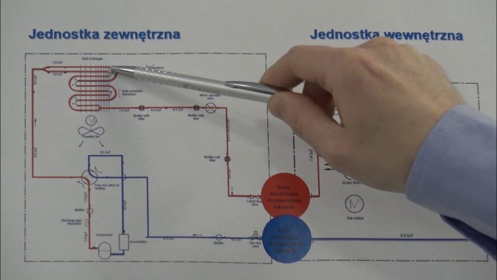 - Główne elementy to sprężarka, skraplacz, zawór rozprężny i parownik.