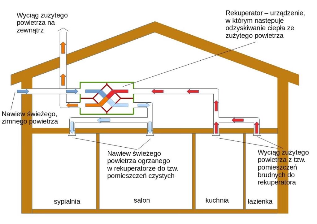 - Potencjalne problemy z kondensacją: W chłodniejszym klimacie, napływające powietrze zewnętrzne może być chłodne i wilgotne, co w połączeniu z podciśnieniem może zwiększać ryzyko kondensacji i problemów z wilgocią w niektórych obszarach budynku.