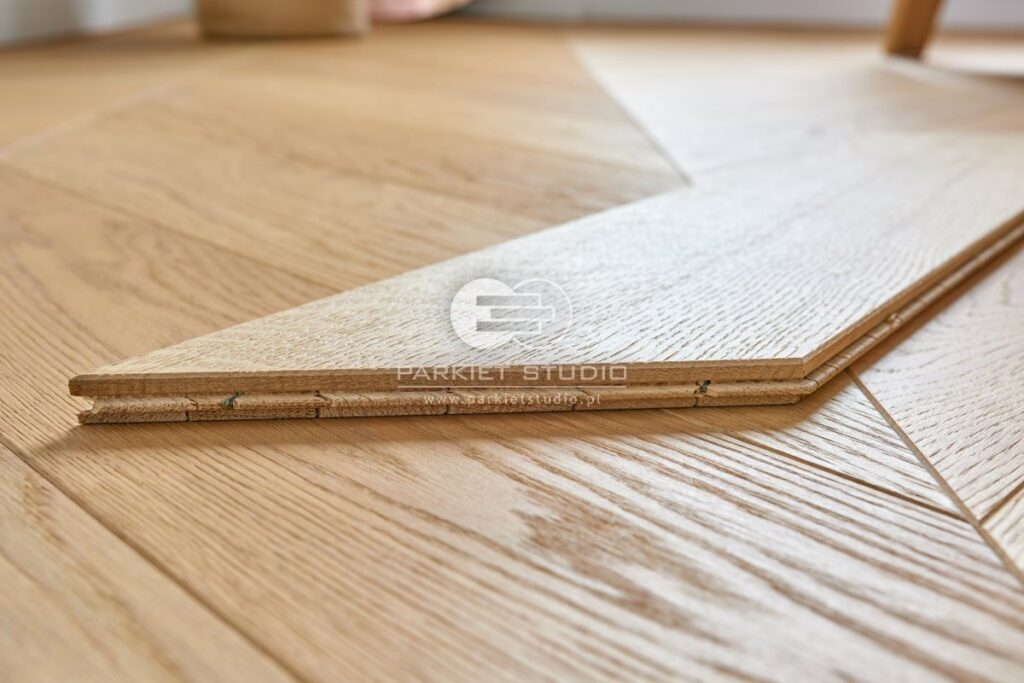Lamele sklejki układane są krzyżowo, co znacząco zwiększa stabilność wymiarową deski. Dzięki temu podłogi warstwowe są mniej podatne na zmiany wilgotności i temperatury w porównaniu do podłóg litych.