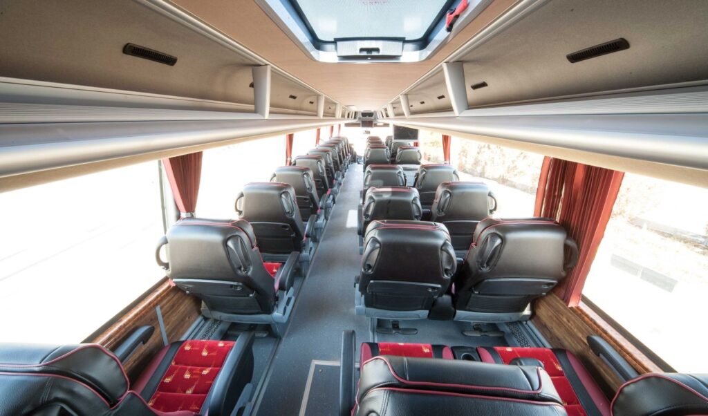 Nasze autobusy wyposażone są w duże i wygodne siedzenia, toaletę , Wi-Fi i gniazdka elektryczne.