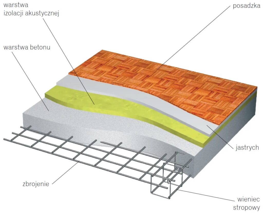 • Dobra izolacyjność akustyczna: Jednolita płyta żelbetowa skutecznie tłumi dźwięki, poprawiając komfort akustyczny w budynku.