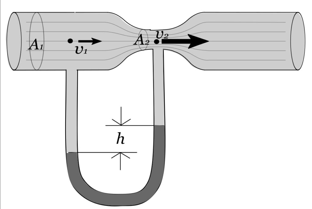 - Mierniki Przepływu (Venturimetr):Venturimetr, to urządzenie pomiarowe wykorzystujące efekt Venturiego do mierzenia przepływu płynów, w tym powietrza. Mierzy się różnicę ciśnień przed i w zwężeniu, a na podstawie tej różnicy, znając charakterystykę urządzenia, wyznacza się przepływ.