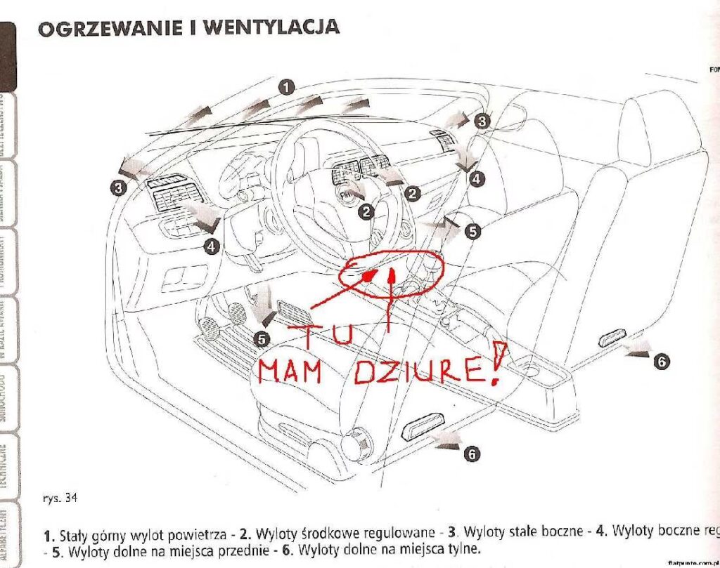 Ergonomia wnętrza Fiata Punto 2003 ma jednak pewne specyficzne rozwiązania. Rozmieszczenie niektórych przełączników może wymagać przyzwyczajenia. Na przykład, sterowanie lusterkami bocznymi umieszczono pod dźwignią hamulca ręcznego, co nie jest intuicyjne. Jednak ogólnie, deska rozdzielcza jest czytelna i funkcjonalna, a dostęp do najważniejszych funkcji jest łatwy.