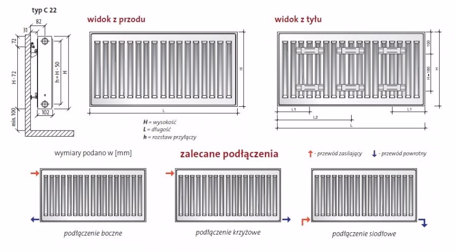 - Sposób podłączenia: Sprawdź, czy grzejnik jest kompatybilny z istniejącą instalacją grzewczą (boczne lub dolne podłączenie).