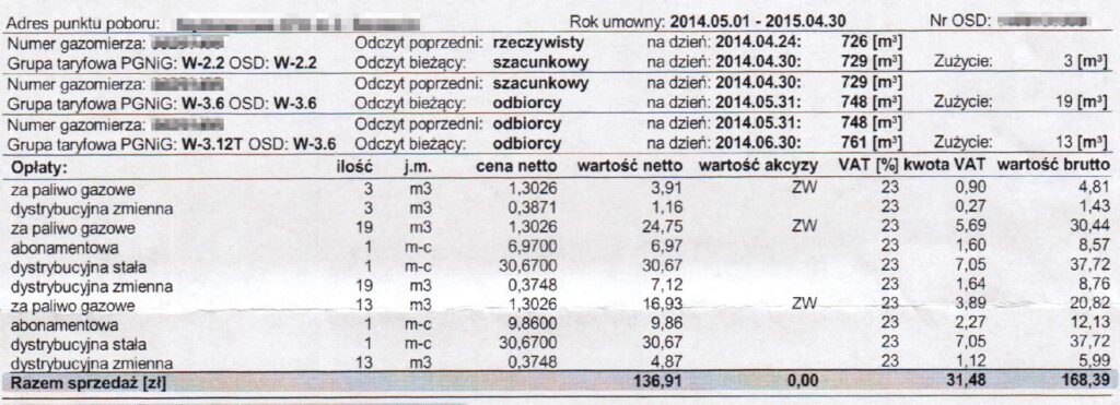 - Wystawienie faktury: Na podstawie przekazanego odczytu dostawca gazu wystawia fakturę za zużyty gaz. Faktura zawiera informacje o ilości zużytego gazu, cenie za jednostkę, opłatach dystrybucyjnych i terminie płatności (zazwyczaj 14 dni).