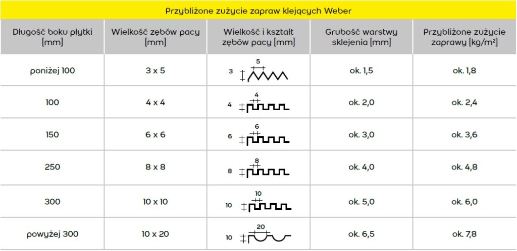 Poniższa tabela przedstawia podsumowanie typowych zastosowań dla różnych grubości gresu: