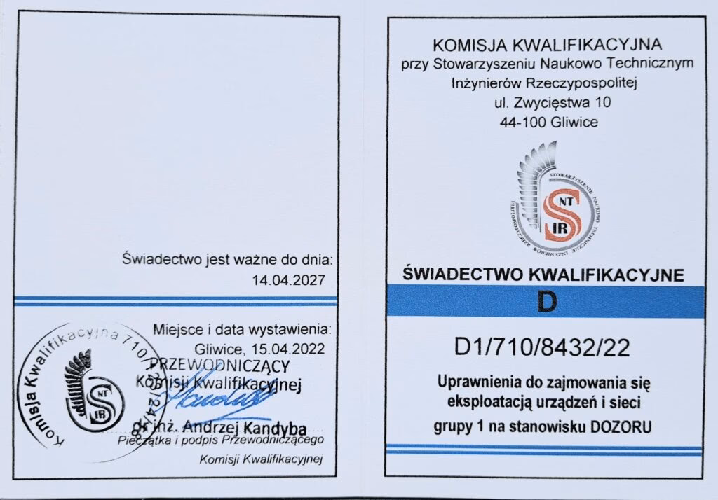 - G2 - Uprawnienia cieplne (urządzenia, instalacje i sieci cieplne)
