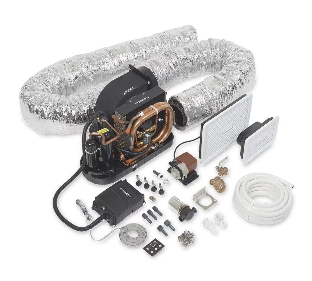 - Klimatyzacja samodzielna (Self-Contained): To najbardziej popularny typ klimatyzacji na mniejszych i średnich jachtach. Jednostka klimatyzacyjna, zawierająca sprężarkę, skraplacz i parownik, jest zamknięta w jednej obudowie i montowana wewnątrz jachtu. Ciepło odprowadzane jest za pomocą wody morskiej. Są stosunkowo proste w instalacji i serwisowaniu, a ich koszt jest niższy niż systemów centralnych.