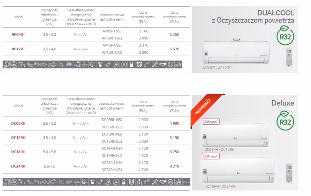 Przykładowe ceny klimatyzatorów LG w Polsce