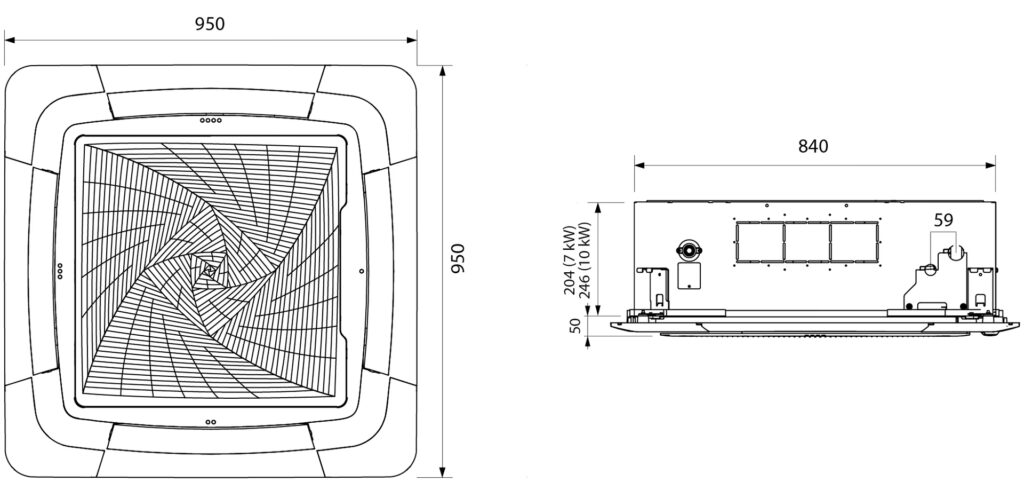 Jaka jest wysokość klimatyzatora kasetonowego sufitowego?