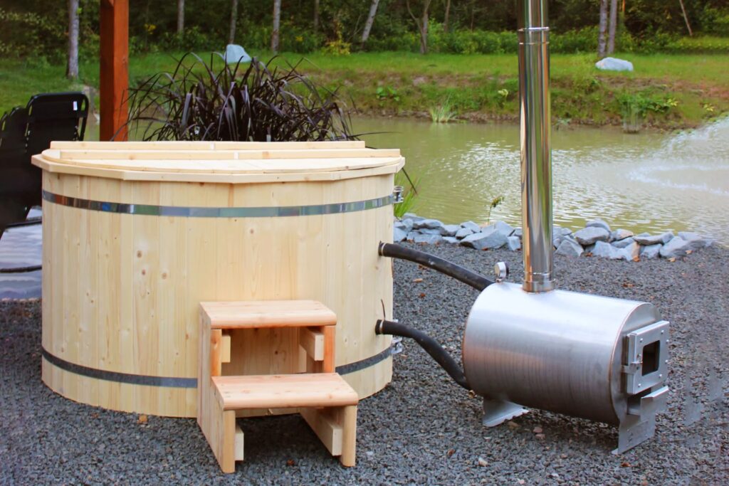 - Wyjątkowy klimat: Palący się ogień tworzy niepowtarzalną atmosferę relaksu i bliskości natury. Dźwięk trzaskającego drewna i zapach dymu dodają uroku kąpieli.