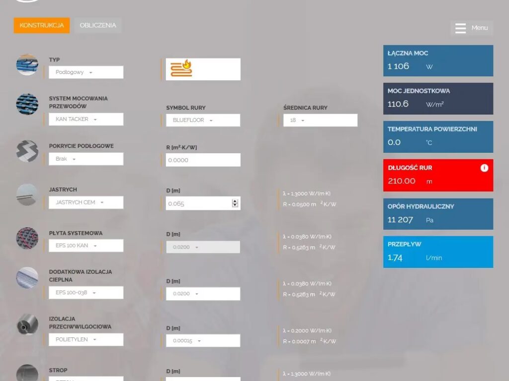 Aby obliczyć przybliżone zużycie energii dla konkretnego pomieszczenia, należy pomnożyć moc systemu (W/m²) przez powierzchnię pomieszczenia (m²) i czas pracy (h). Na przykład, dla sypialni o powierzchni 12 m², z systemem o mocy 150 W/m², pracującym 12 godzin dziennie, zużycie energii elektrycznej wyniesie: