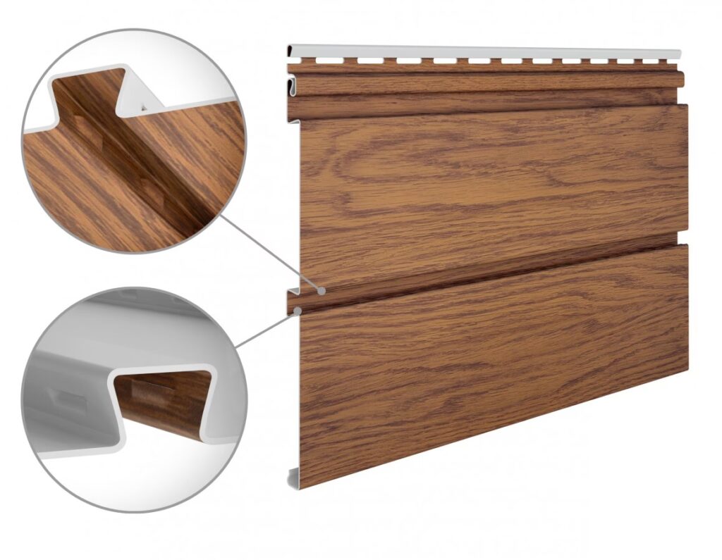 - Montaż paneli podbitki. Panele podbitki wsuwa się w listwy J, prostopadle do ściany budynku. Pierwszy panel należy wsunąć w listwę J przy ścianie budynku, a następnie dociskać kolejne panele, aż do listwy J na krawędzi okapu. Panele PVC posiadają zazwyczaj system łączenia na „pióro i wpust”, co ułatwia ich montaż i zapewnia szczelne połączenie. Panele nie powinny być mocowane na sztywno. Należy pozostawić niewielki luz, około 2-3 mm, na ewentualne rozszerzanie i kurczenie się materiału pod wpływem temperatury.