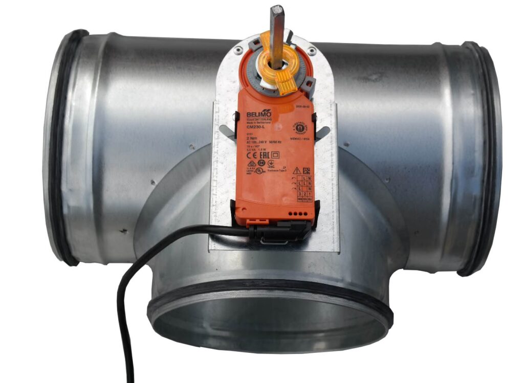- Odcinania przepływu powietrza: W sytuacjach awaryjnych, np. w przypadku pożaru, przepustnice odcinające mogą zablokować przepływ powietrza w kanałach wentylacyjnych, zapobiegając rozprzestrzenianiu się ognia i dymu.