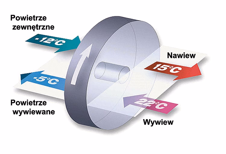 - Odzysk wilgoci: Regeneratory rotacyjne mogą odzyskiwać wilgoć z powietrza wywiewanego, co jest korzystne w okresach zimowych, kiedy powietrze jest suche.