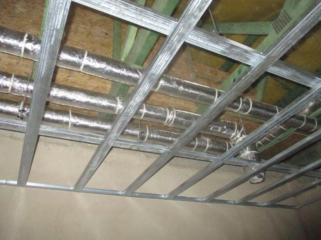 Przewody wentylacyjne i klimatyzacyjne również mogą być ukryte za sufitem podwieszanym. Ważne jest, aby zapewnić do nich dostęp poprzez klapy rewizyjne, umieszczone w miejscach otworów rewizyjnych instalacji. Przewody prowadzące zimne powietrze powinny być izolowane termicznie i przeciwwilgociowo, aby uniknąć kondensacji i zawilgocenia sufitu. Wentylatory montuje się bezpośrednio do stropu, a z przewodami łączy się je elastycznymi przewodami, aby uniknąć przenoszenia drgań na konstrukcję sufitu.