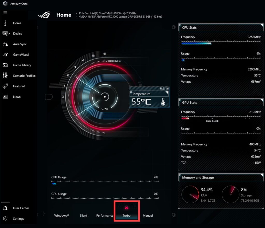 3. Armoury Crate (Laptopy gamingowe ROG/TUF)