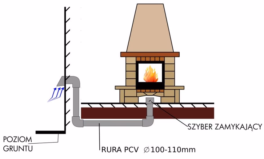 Najlepszym i najbezpieczniejszym rozwiązaniem jest doprowadzenie powietrza do kominka bezpośrednio z zewnątrz budynku za pomocą specjalnego kanału nawiewnego. Istnieją dwa główne sposoby realizacji takiego systemu: