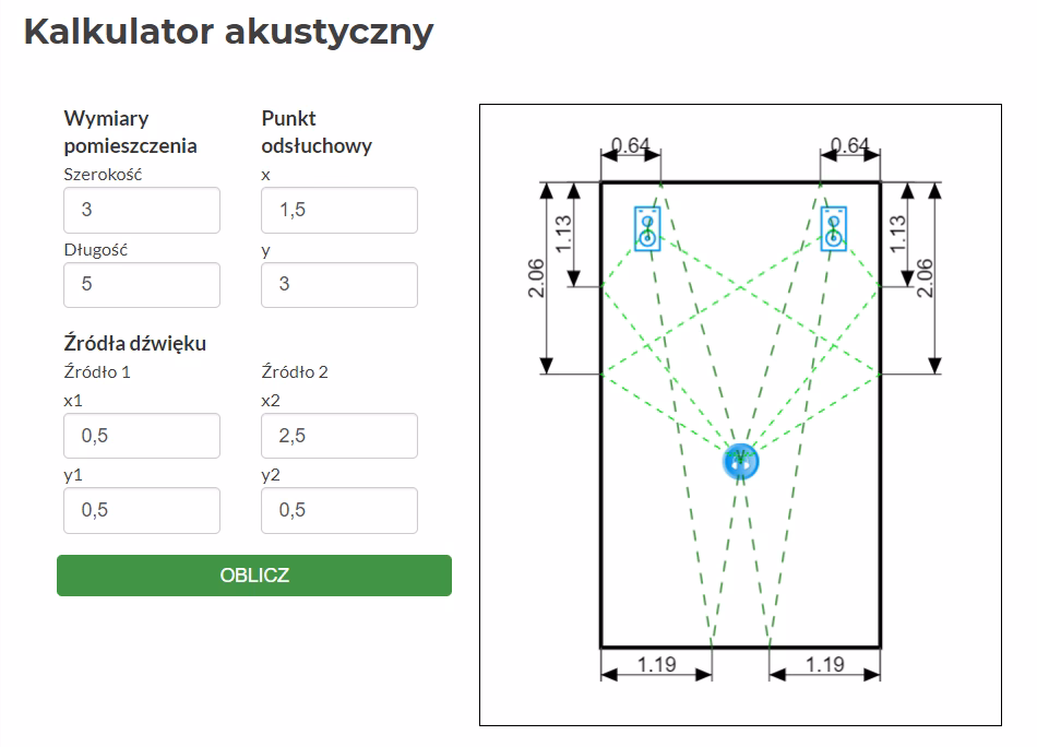 - Obliczenie mocy akustycznej: Moc akustyczną LW oblicza się ze wzoru: