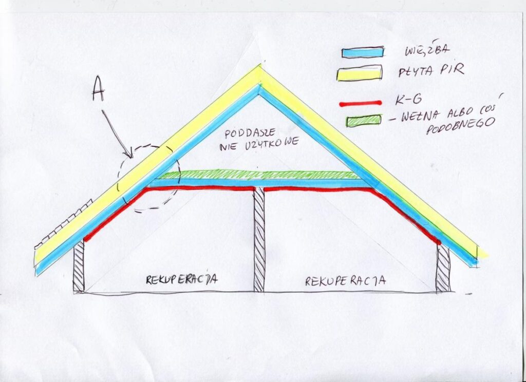 - Możliwe jest również zastosowanie cieńszych płyt, np. 40-60 mm, w połączeniu z izolacją międzykrokwiową. Takie rozwiązanie pozwala na dodatkowe oszczędności miejsca i materiału, przy zachowaniu wysokiej efektywności izolacyjnej.