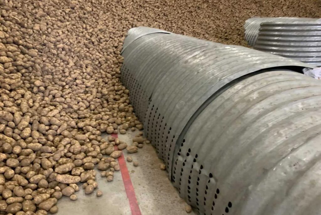 • Unikanie uszkodzeń: Podczas zbioru i transportu należy unikać uszkodzeń mechanicznych bulw, ponieważ uszkodzone ziemniaki szybciej się psują.